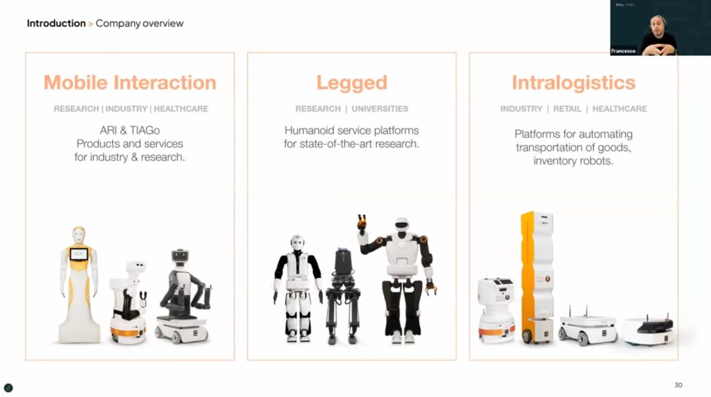 Francesco Ferro dedica una parte central de su presentación a explicar el origen, la estructura y la evolución tecnológica de PAL Robotics, una de las compañías más veteranas y respetadas en el mundo de la robótica humanoide.